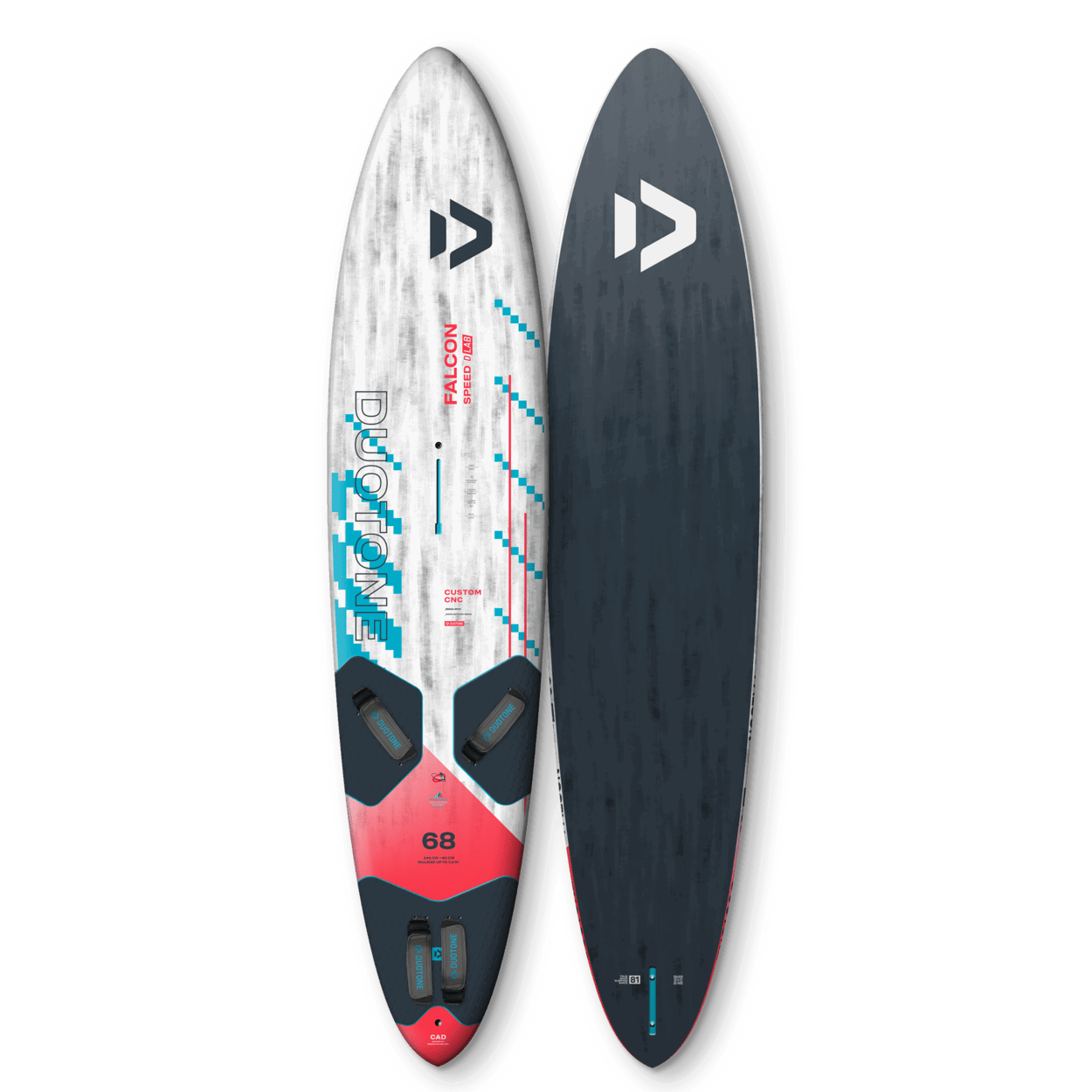 Thanks to our MADE TO ORDER concept we are able to offer 3 brand new, lightning fast competition speed boards. Instead of the usual “one does it all” design, we offer 3 individual sizes and designs that allow us to make the most specialized and radical speed boards we have ever made!Instead of the industry standard semi-custom technology, we now use our exclusive FULL CUSTOM D/LAB technology, which is identical to how the highest end custom made boards are build. But unlike a custom made board, you get a meticulously tested and proven shape.The result is the most mature and competitive speed board range ever made!FALCON_SPEED D/LAB 56The biggest recommended sail size for this board is 5.3, which says it all. This boards is made for nuking spots like Luderitz. The 56 liter size is all about control. So be assured that this board will never let go before you do!FALCON_SPEED D/LAB 68Our all-around speed demon offers the biggest range of use. It allows carrying slightly bigger sails than the 56, while offering almost the same top end speed.FALCON_SPEED D/LAB 78The 78 liter size even works with a 6.2 sail. However due to the NOSE DOWN concept you can also use a 5.0 fully powered up. The design allows the right rail pressure to drive the fin through the lulls at lower wind speeds and at the same time trims smooth and stable with excellent acceleration when the heavy gusts hit in. Speedsailing has never been so easy, check it out at your local speed spot!FALCON_SPEED D/LAB >> Made for pure adrenaline speed junkies!