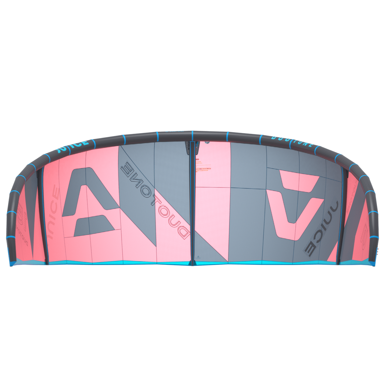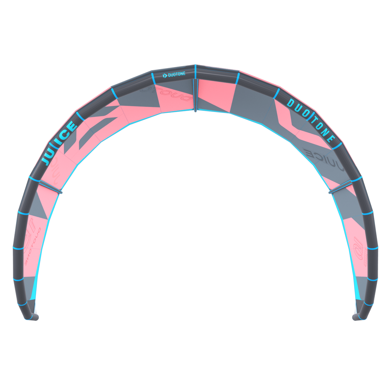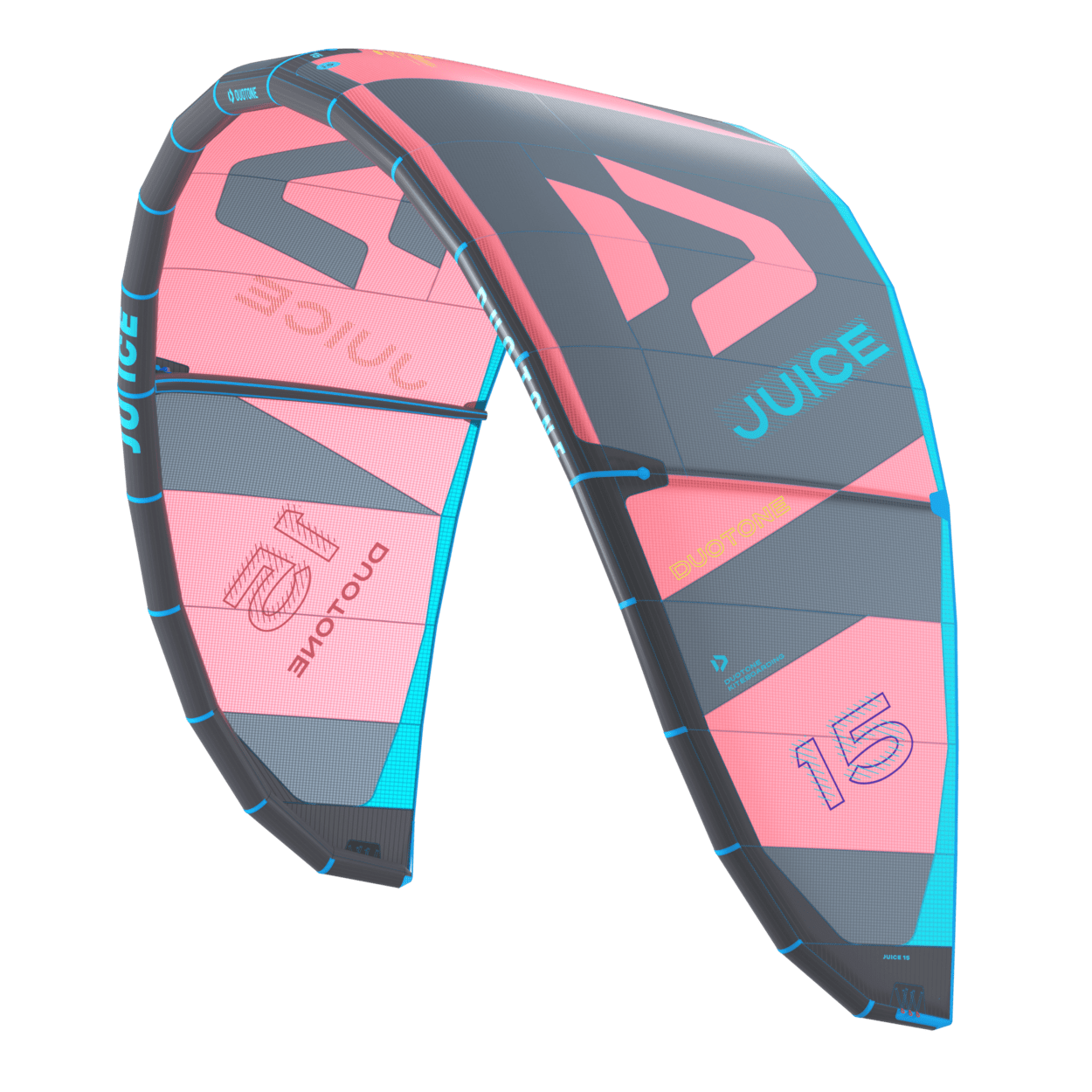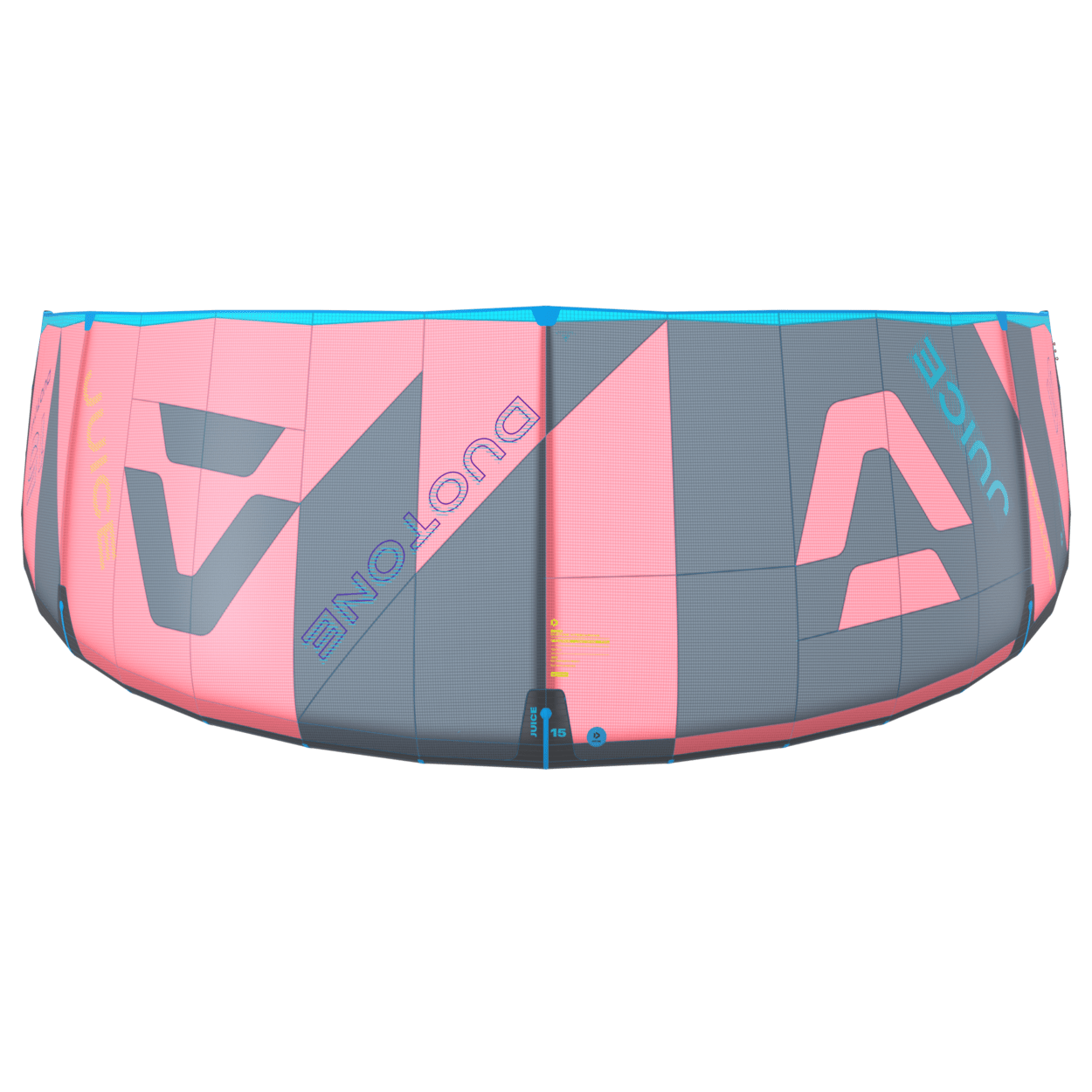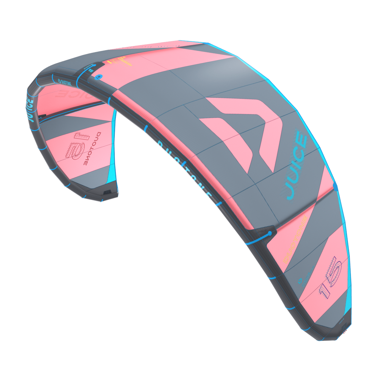 As a kitesurfer, you know the feeling, you get to the beach to discover the forecast wasn’t telling the truth, and there is less wind than predicted. The parking lot is full of dejected kiters doing a wind dance. Luckily, you’re packing the Juice. You pump it up, launch it into the sky and feel the power. Within minutes of arriving, you are carving lines into the ocean, popping airs and practicing your tricks. How is this possible? Years of intense research and development to create the ultimate light wind kite using up to date materials. It’s the kite every kiter needs, the one our pro riders go to in a pinch and the kite that delivers the most bang for buck when the wind doesn’t play ball. Perfect for light wind freeriding, the smaller sizes are fantastic for foiling, while the larger sizes have been tweaked to offer maximum power to twin tip riders wanting to perform tricks. Some light wind kites are slow and sluggish; the Juice is a Formula 1 car in a car park full of trucks. The Flex Struts help the kite to respond instantly to rider input, giving a dynamic and exciting flying experience not often found in larger kites. With light bar pressure and reduced drag on the airframe, kitesurfing becomes an effortless pastime where you can forget about the kite and concentrate on the next trick. If the wind picks up, no problem, the Juice’s wide wind range can handle it, and you’ll discover more speed, power and even bigger jumps with massive hangtime. Latest addition is the 14m! The Juice is the kite to have in your quiver to ensure you have a fun session every time you head to the beach.