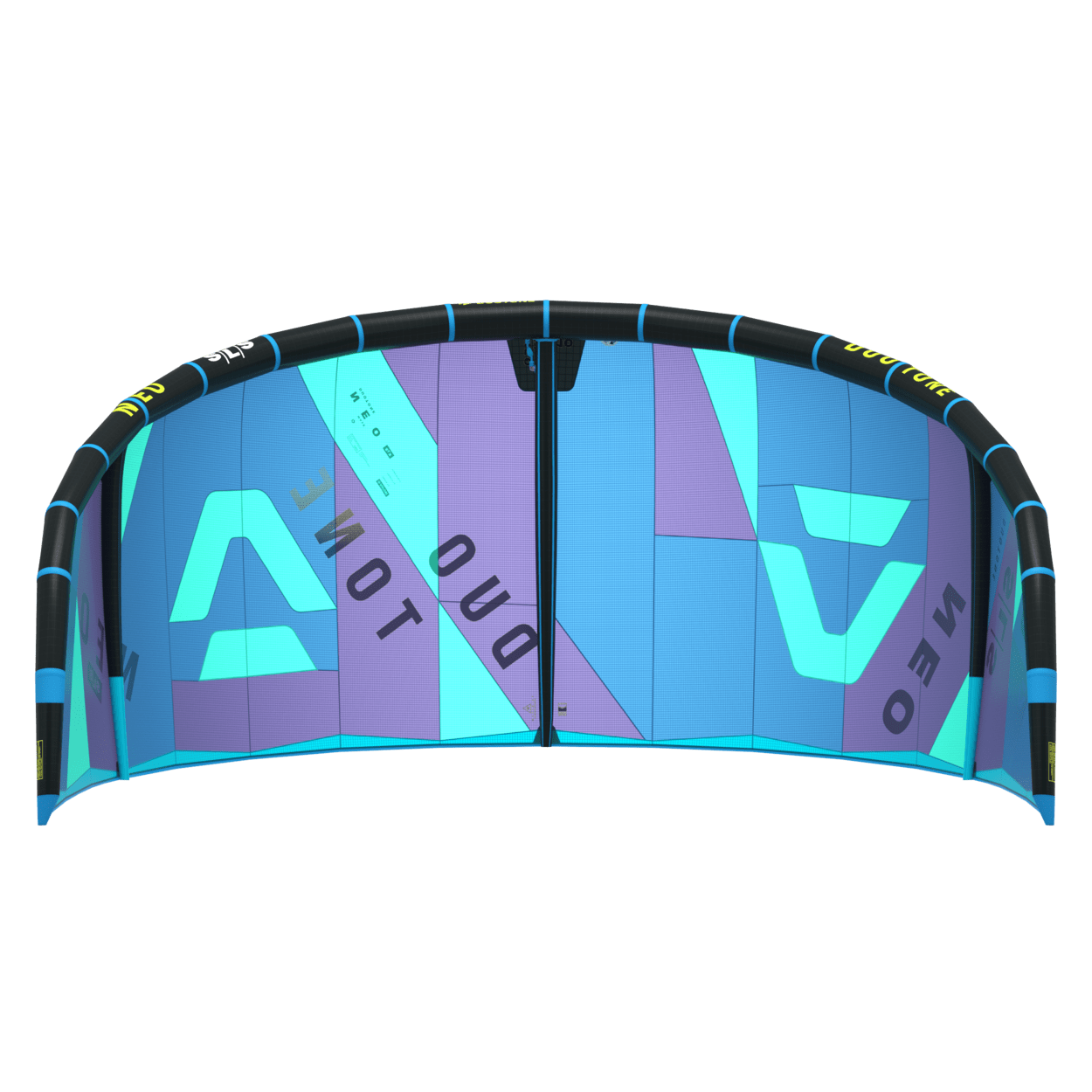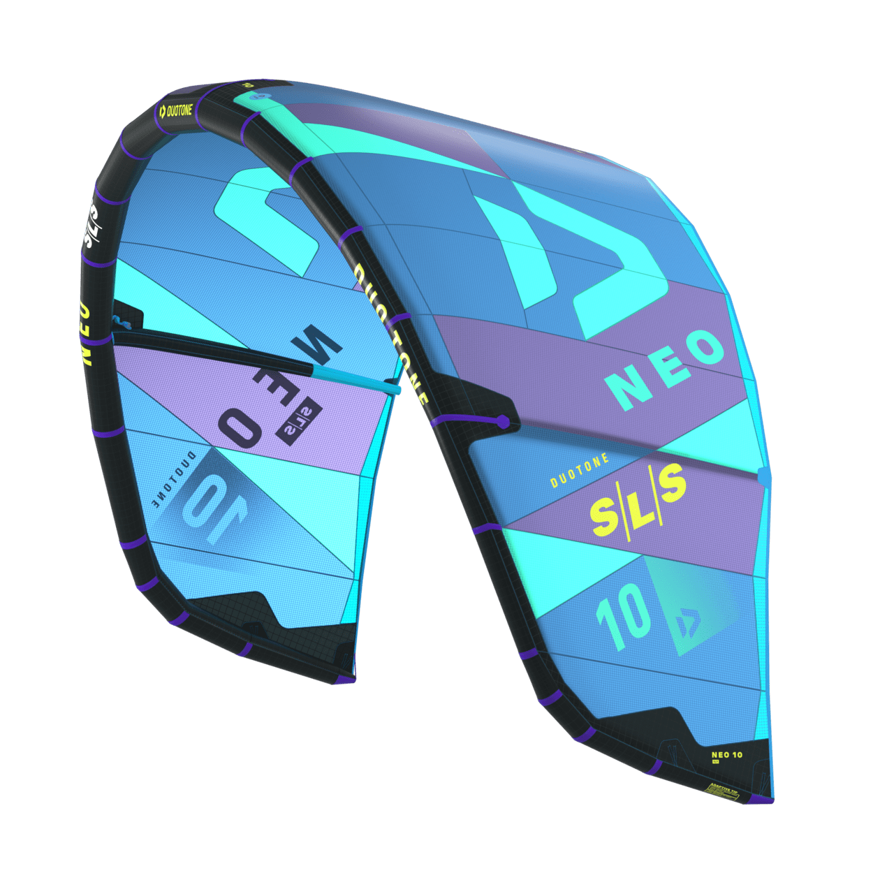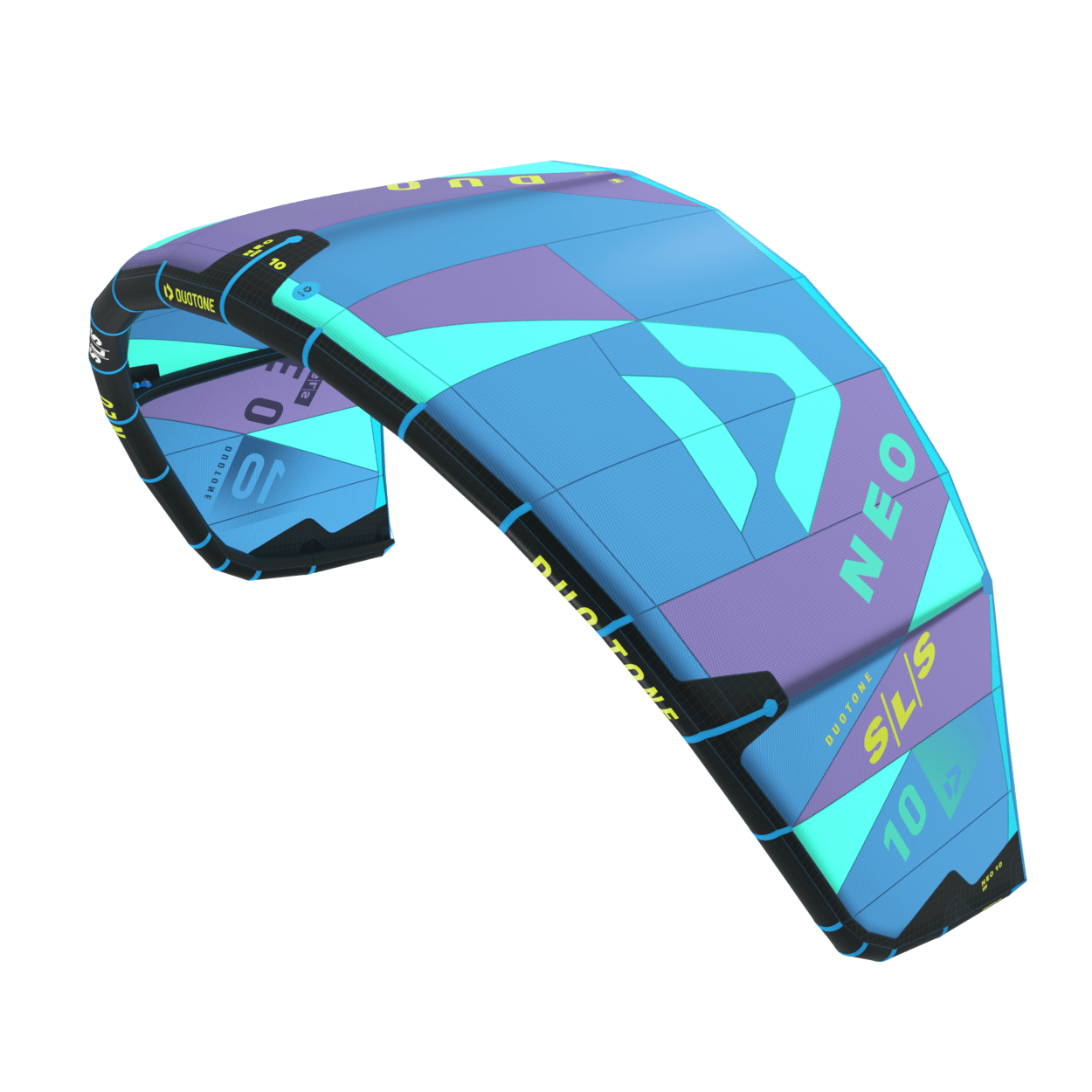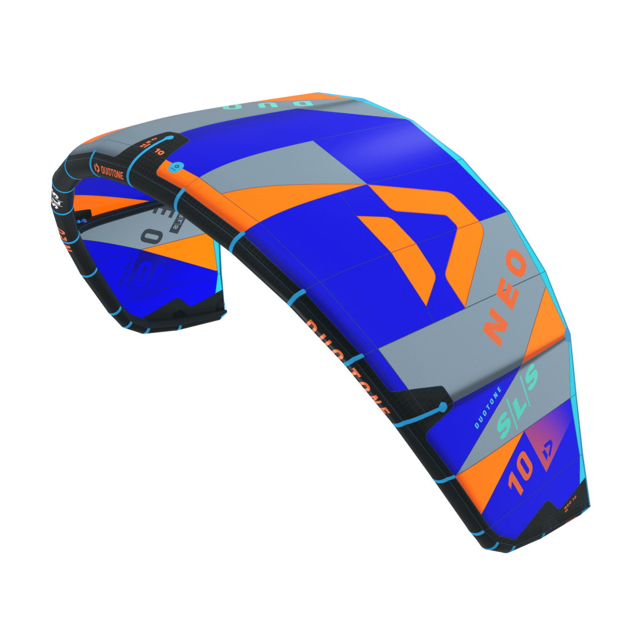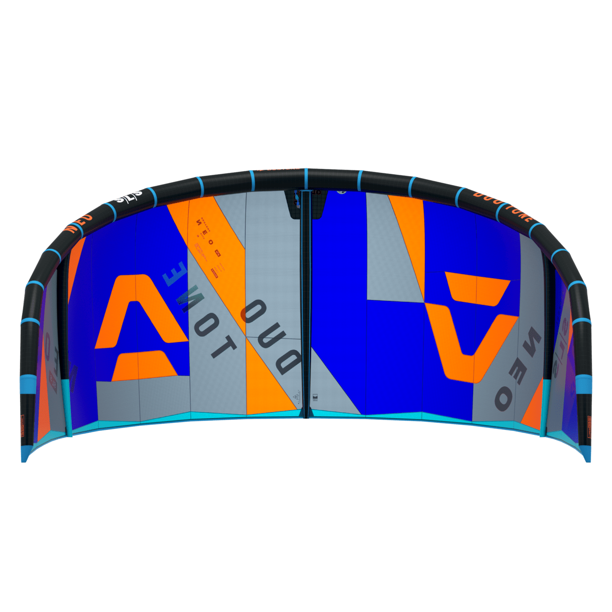 The new Neo SLS builds on the incredible legacy of the previous years and further enhances the rider experience. Featuring Hybrid Flex Struts, which are now straighter and a wider, squarer wing tip shape show the focus was set on further improving the handling of the kite. The result is a kite with smoother handling, faster steering and a shorter depower stroke, allowing you to dump power instantly. The Hybrid Flex Struts are controlled by the precisely tuned ratio of Penta TX and STW70 adjusted to each size. The percentage of flex material in the tip struts decreases as the size increases. The new wing tips open up and flex when under pressure from the back lines, making for a super fast and near-instant initiation into the turn. The legendary wind range remains, with plenty of low-end power allowing you to get out whatever the conditions, while the top end keeps you on the water for longer. The Neo SLS features a Penta TX and Trinity TX construction, which combines lightweight materials and exceptional durability, resulting in a kite that is noticeable lighter than regular constructions. This weight reduction enhances the drifting capabilities of the Neo SLS, allowing you to execute your moves effortlessly on the wave without worrying about the kite. Even when depowered with the bar pushed away, the Neo SLS maintains its dynamic handling and steering, ensuring you retain full control while riding the wave. The kite's responsiveness remains unchanged, providing a seamless experience throughout your session. To ensure the kite can be versatile and meet the demands of wave riders and strapless freestylers, the Neo SLS offers multiple settings on the tips, allowing you to tailor the kite's performance to the specific conditions of the day. Whether you're indulging in a flatwater strapless freestyle session or playing in the waves, you can set the kite for maximum pop and powerful loops or fine-tune it for maximum drift and rapid turning speed, depending on your preference and the nature of the session. The Neo SLS has long set a standard for wave riding performance, and this year the enhanced performance takes the kite to new levels, both on the waves and in the air.