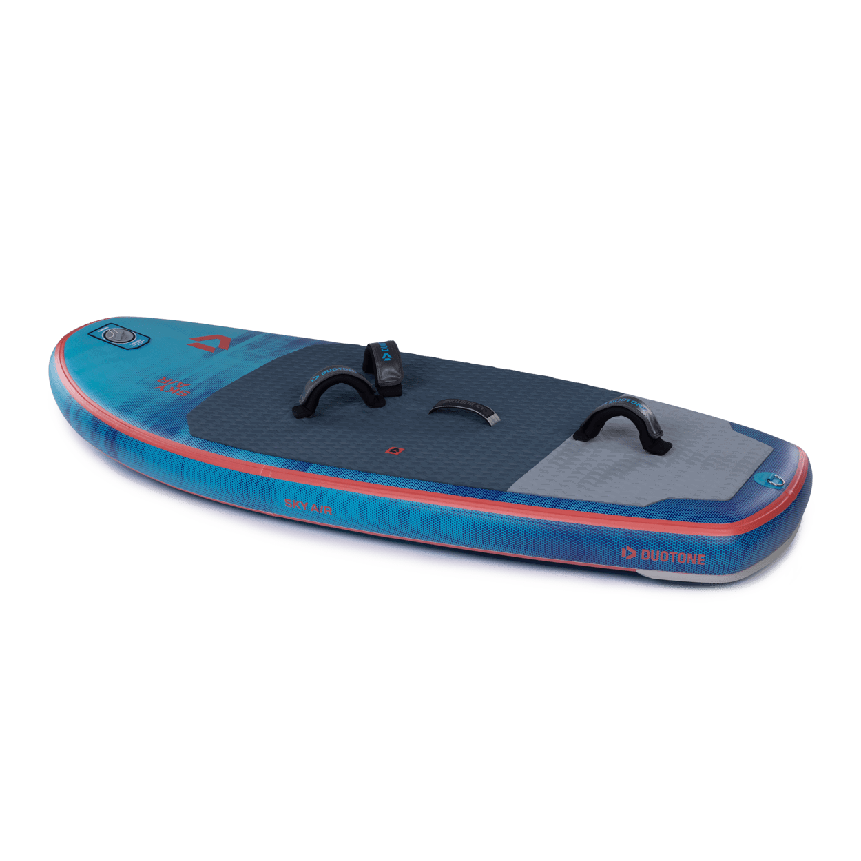 The Sky Air comes in a wheeled backpack that accommodates the board, pump, and all accessories. Additionally, it provides ample space for your wing and foil, making it the ultimate travel companion.With three models in 5’5” (105l), 5’9” (125l) and 7’2” (215l), we’ve focused the Sky Air range on the most popular sizes, of which the smaller two match style and size of the respective Sky Free. The large 7’2” comes with side and tail fins for upwind ability when non foiling to learn the basics before your first take-off.All three models feature our rigid fusion technology with solid carbon plate, including foil tracks and carrying handle which stiffens and adds stability to the stance area. A silicon rail edge offers great release onto the foil, while footstrap options, a premium bag and Multipump for Board and Wing round off this fun, durable and versatile package.