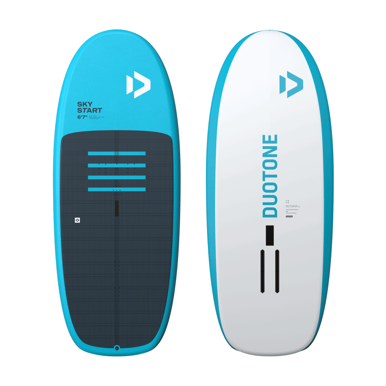 Learn Wing Foiling in no time with the Sky Start – the easiest possible entry into the exciting world of flying above the water!Based on the Sky Wing Soft Top and the feedback of our unmatched network of schools and centers, we’ve updated the concept of the perfect learner board and designed the Sky Start.With a length of 6’7”, 31 inches of width and a volume of 155l, the completely new outline of the Sky Start offers a very stable and safe platform for those learning the basic steps from crawling onto the board to finding the right stance and their first take-off. For those riders being able to safely fly along and learning first gybes and tacks, the Sky Start is still compact enough for a great flying sensation to have fun and progress.Covered entirely in soft and gentle EVA pad around the rails and the full deck, the Sky Start makes the entry into Wing Foiling as comfortable and user friendly as you possibly imagine!