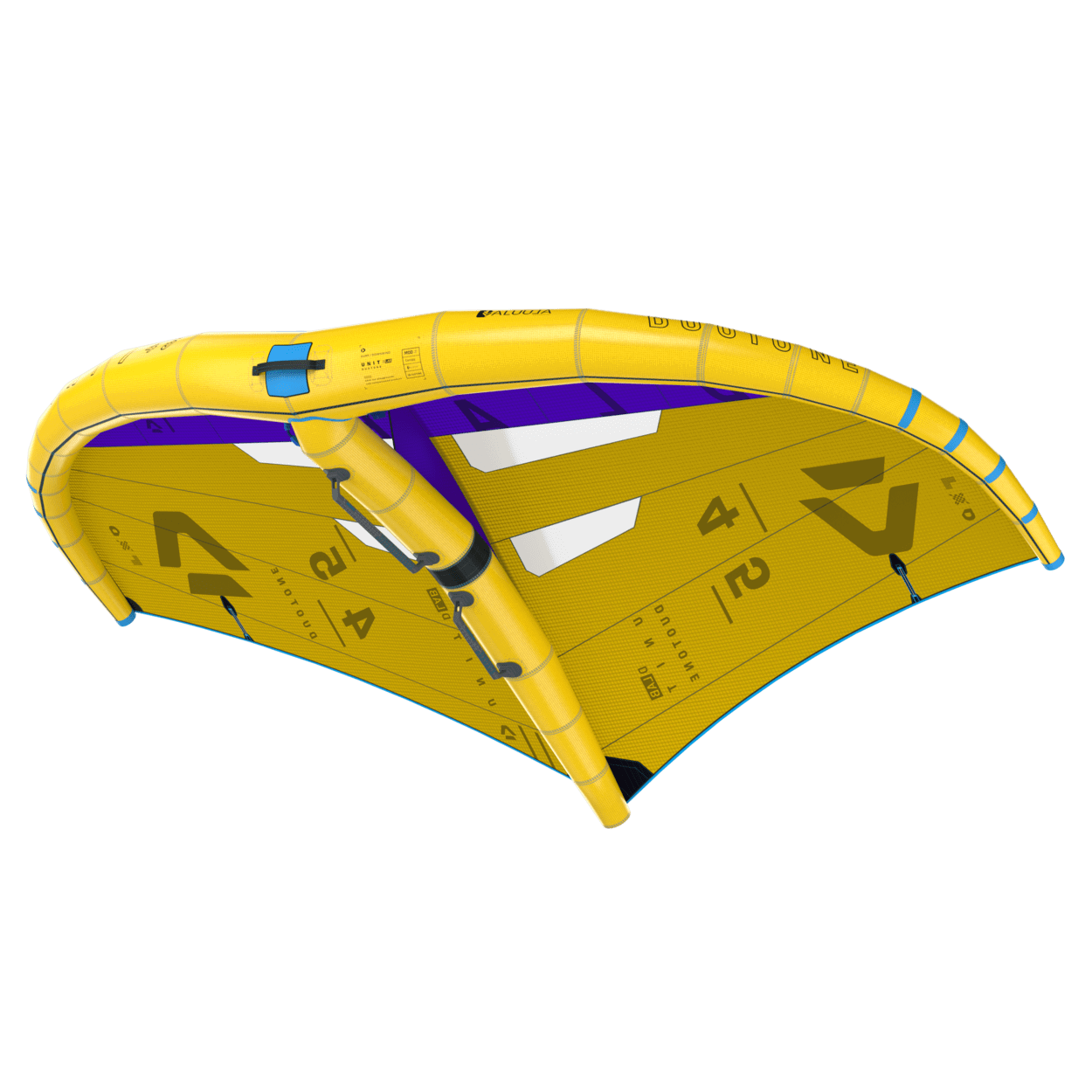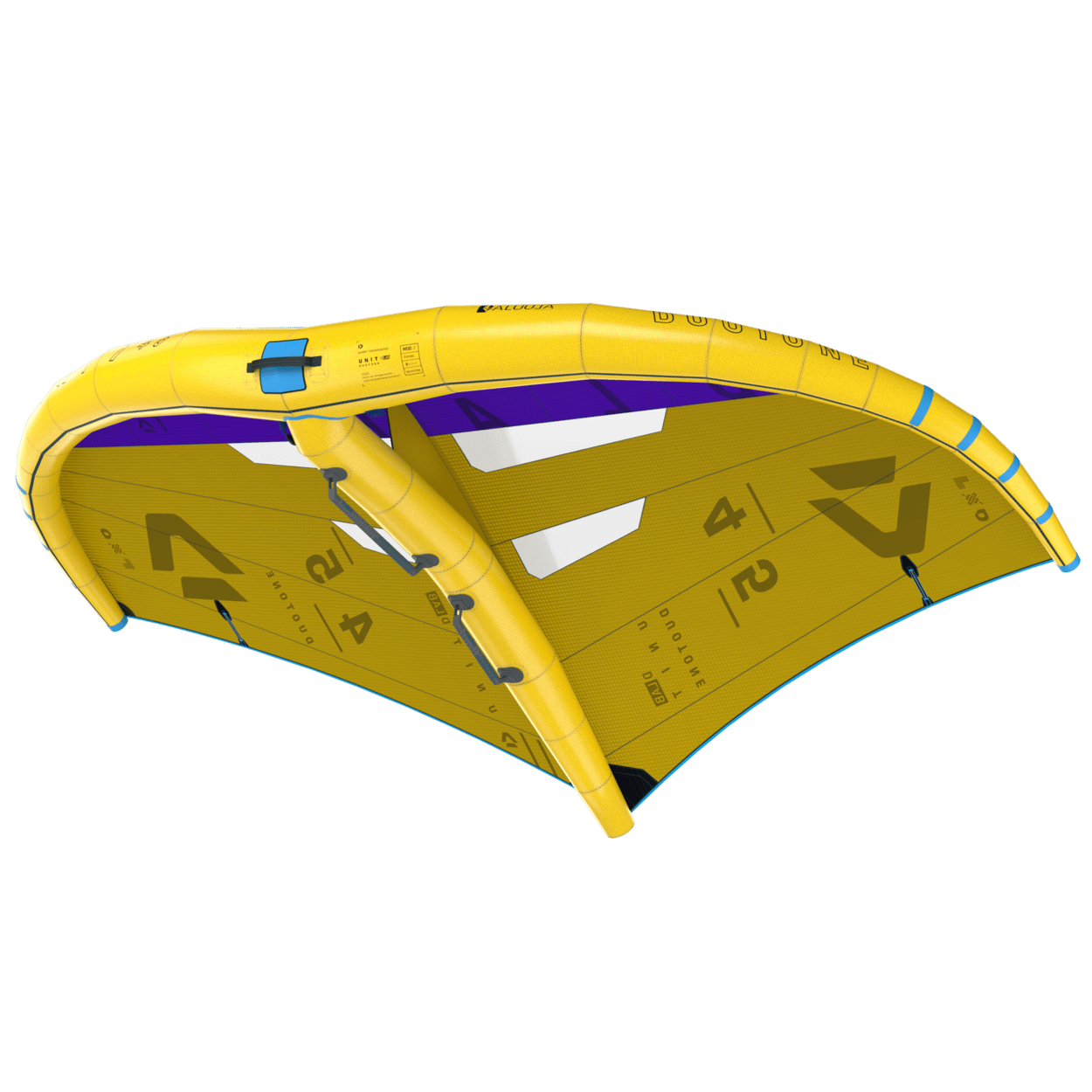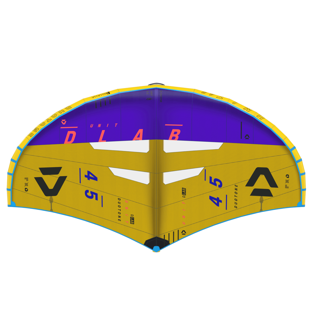 The revolutionary Unit D/LAB wing is the pinnacle of performance wing design. Crafted with meticulous attention to detail, the Unit D/LAB combines advanced design with cutting-edge materials to deliver an unparalleled riding experience.At the heart of the Unit D/LAB Wing lies the groundbreaking Aluula material, used in the leading edge and strut. By incorporating Aluula, we have achieved that our D/LAB wings are not only light, but also incredibly responsive.The reduced diameter of the leading edge and strut enhances the Unit D/LABs efficiency and reducing drag. The premium Aluula also absorbs gusts to provide a smooth ride even in challenging winds.Designed with performance and rider comfort in mind, the Unit D/LAB features a longer carbon front handle. This ergonomic design enables effortless one-handed riding, opening new realms of tricks and maneuvers now possible. The strategically angled strut profile, ensures a natural riding position, providing superior comfort especially when riding toe side.Refinements to the wing's outline, twist, and canopy tension further elevate the overall performance. With precise adjustments to the geometry, the Unit D/LAB Wing delivers exceptional stability and control when fully powered, while offering improved drift when flagged out while on the wave or riding downwind.Whether you crave the exhilaration of carving through the surf, executing jaw-dropping aerial maneuvers with extended hang time, or are seeking powerful straight-line performance with unmatched lift, the D/LAB Wing is theultimate choice.Immerse yourself in the seamless fusion of cutting-edge materials, advanced design, and uncompromising performance and take your riding to new heights with the Unit D/LAB.